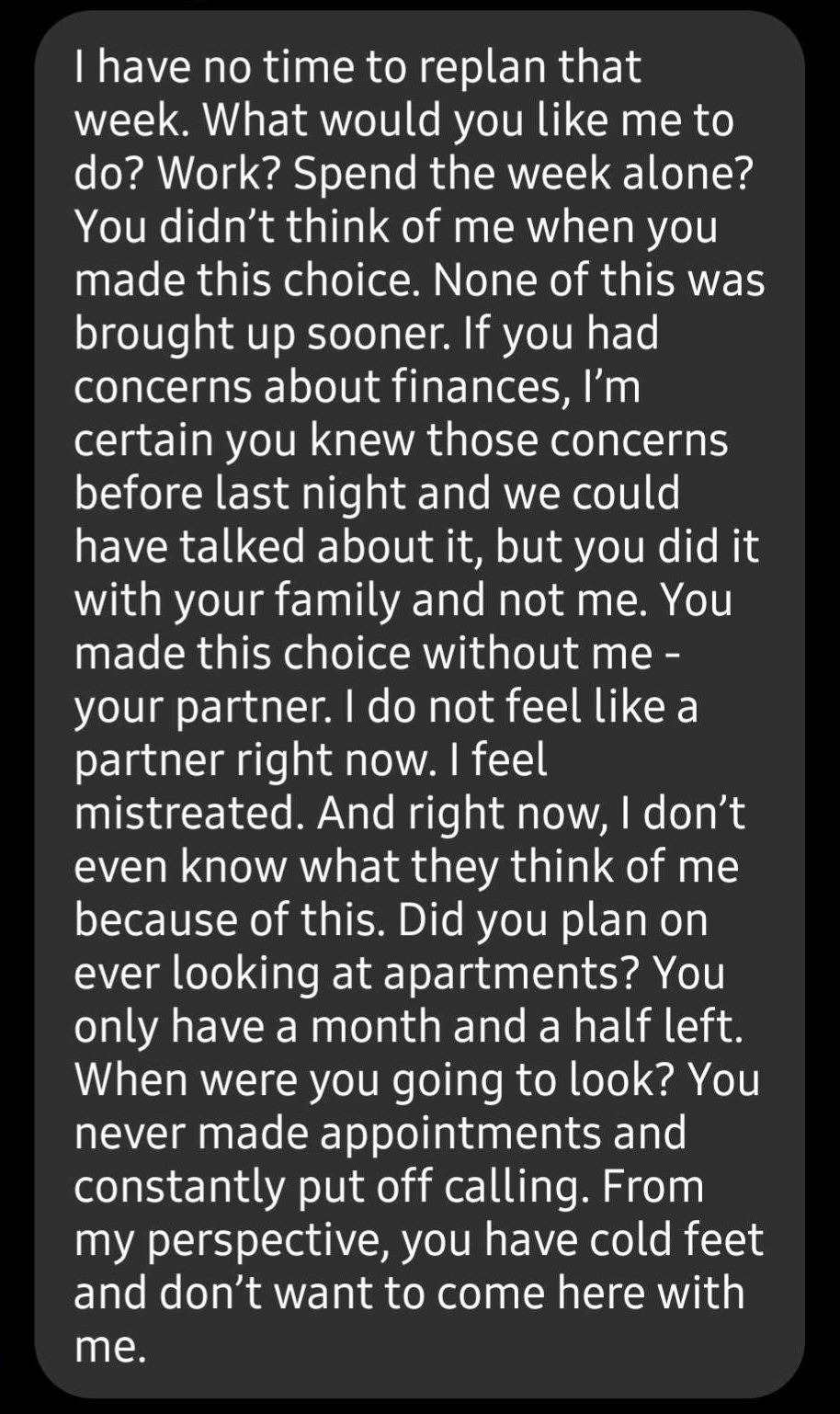 We had been working towards marriage — I was moving to Ohio with the intention of proposing soon after.